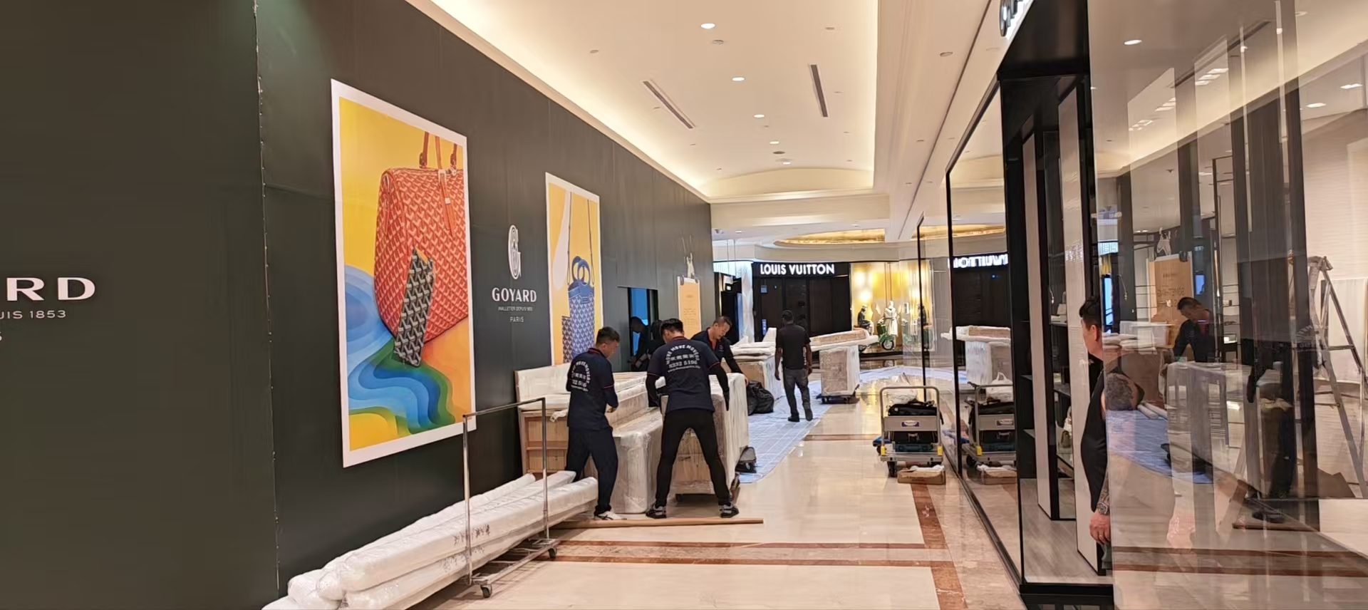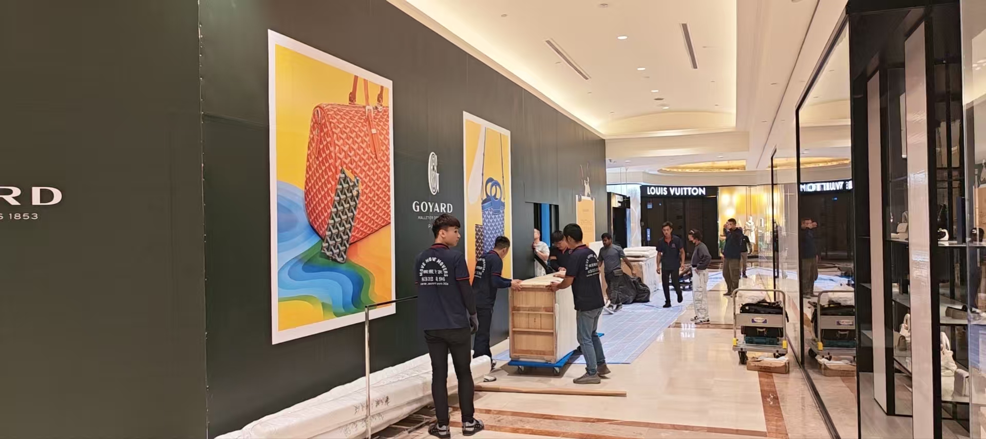 “Every GOYARD display cabinet and marble counter was uncrated and positioned to millimetre precision before the brand inspection the next morning.”